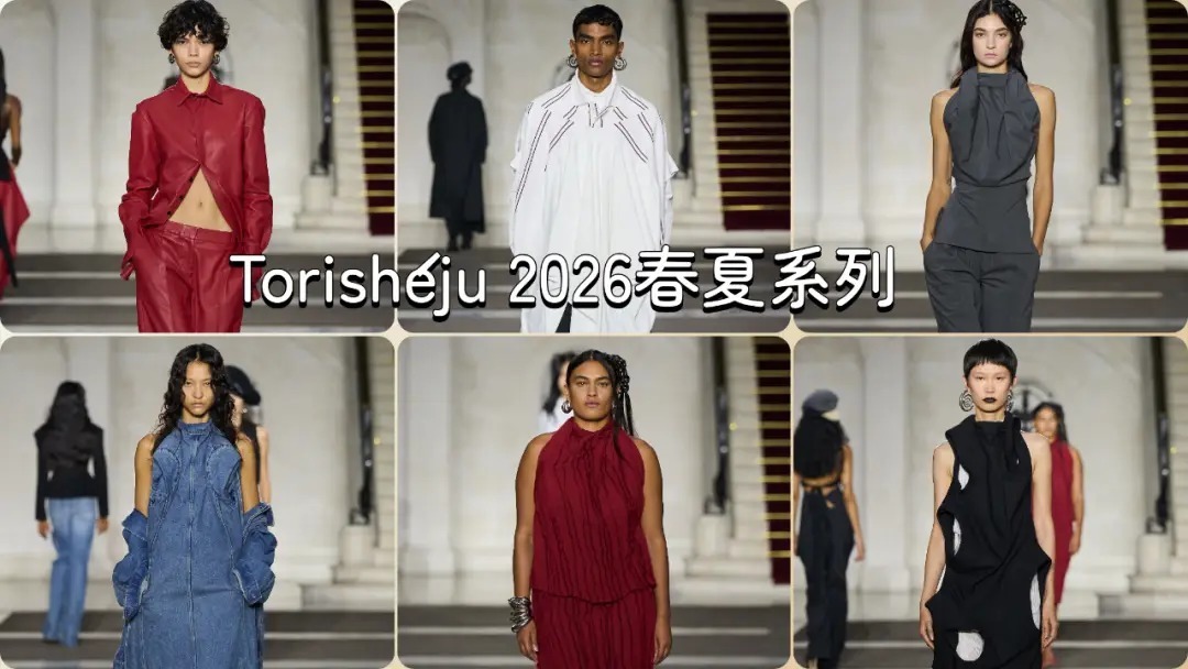 系列意义与评价颇高:Torishéju Dumi刚刚获年LVMH工艺大奖(LVMH Savoir - Faire Prize),这场秀是她获奖后的首次亮相,进一步巩固了她作为“值得关注的设计师”的地位。《FashionNetwork》评价:“她是一位思考型设计师,将军事、工业和实用元素融合成聪明、连贯的服装。每一个造型都带着一丝艺术感,但又始终具有穿着可能性——这是真正才华横溢的设计师的标志。”《L'Officiel》评论:“在Torishéju春夏系列中,制服不再是秩序的象征,而是思想风暴穿越的废墟场。每一件作品都似乎被精神超载所污染:熟悉的轮廓——校服、军装、工作服——被分解、变形,变得难以辨认。Torishéju 2026春夏系列“DŪRER”不仅是一场时装秀,更是对当代社会身份认同与规则的哲学思考。通过对制服元素的解构与重构,Torishéju Dumi创造了既前卫又实穿的作品,展现了她作为新一代设计师的独特视角与精湛工艺。Torishéju 2026春夏系列“DŪRER”被权威媒体一致评价为“艺术性与实穿性的完美平衡”,《FashionNetwork》直接称其为“真正才华横溢设计师的标志”。